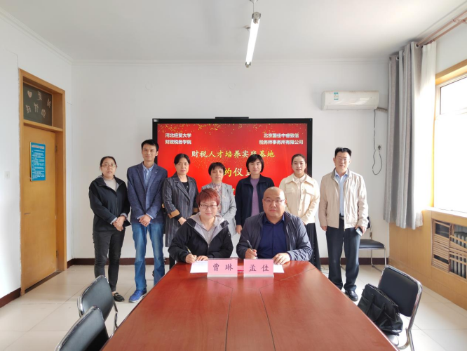 与北京国佳中睿致信税务师事务所有限公司签署财税人才培养实验基地的签约仪式在学院会议室举行。党委副书记胡卓理、副院长温立洲、北京国佳中睿致信税师事务所所长孟佳、税务系系主任曹琳、财政系系主任李玉姣、税务专硕导师组组长李金荣及学院部分教师参加了签约仪式。