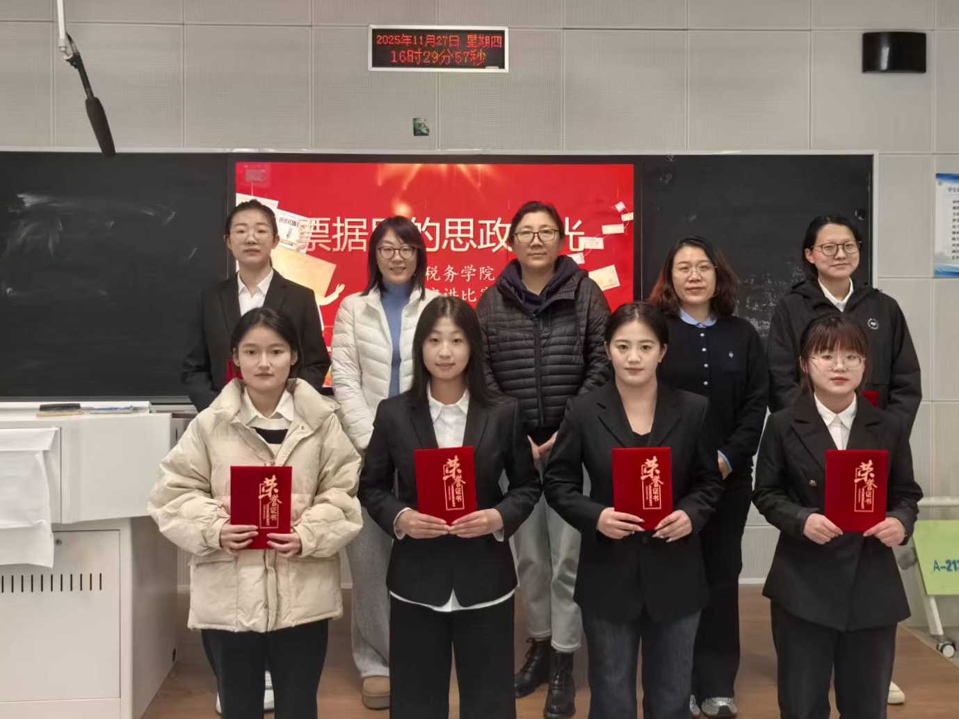 比赛中,选手们各展风采,紧扣“票据里的思政微光”主题,以一张张票据为时代切片,讲述了票据背后所承载的家国记忆与时代变迁。他们凭借扎实的文稿和富有感染力的表达,将个人感悟与历史事件相结合,深刻阐释了票据在思政教育中的独特价值。评委老师从主题内容、语言表达、现场表现、创新亮点等维度精准点评,既肯定选手亮点,也给出专业提升建议,助力大家在表达与思考中成长。经过评审,比赛共评出一等奖1名,二等奖2名,三等奖1名,优秀奖2名。