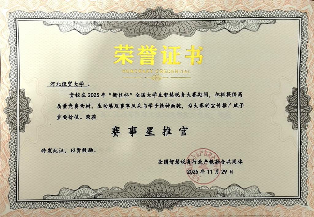 因在赛事组织、人才培养成果等方面的突出表现,被授予 “赛事星推官” 荣誉称号,实现学子竞技与学院品牌的双重突破。