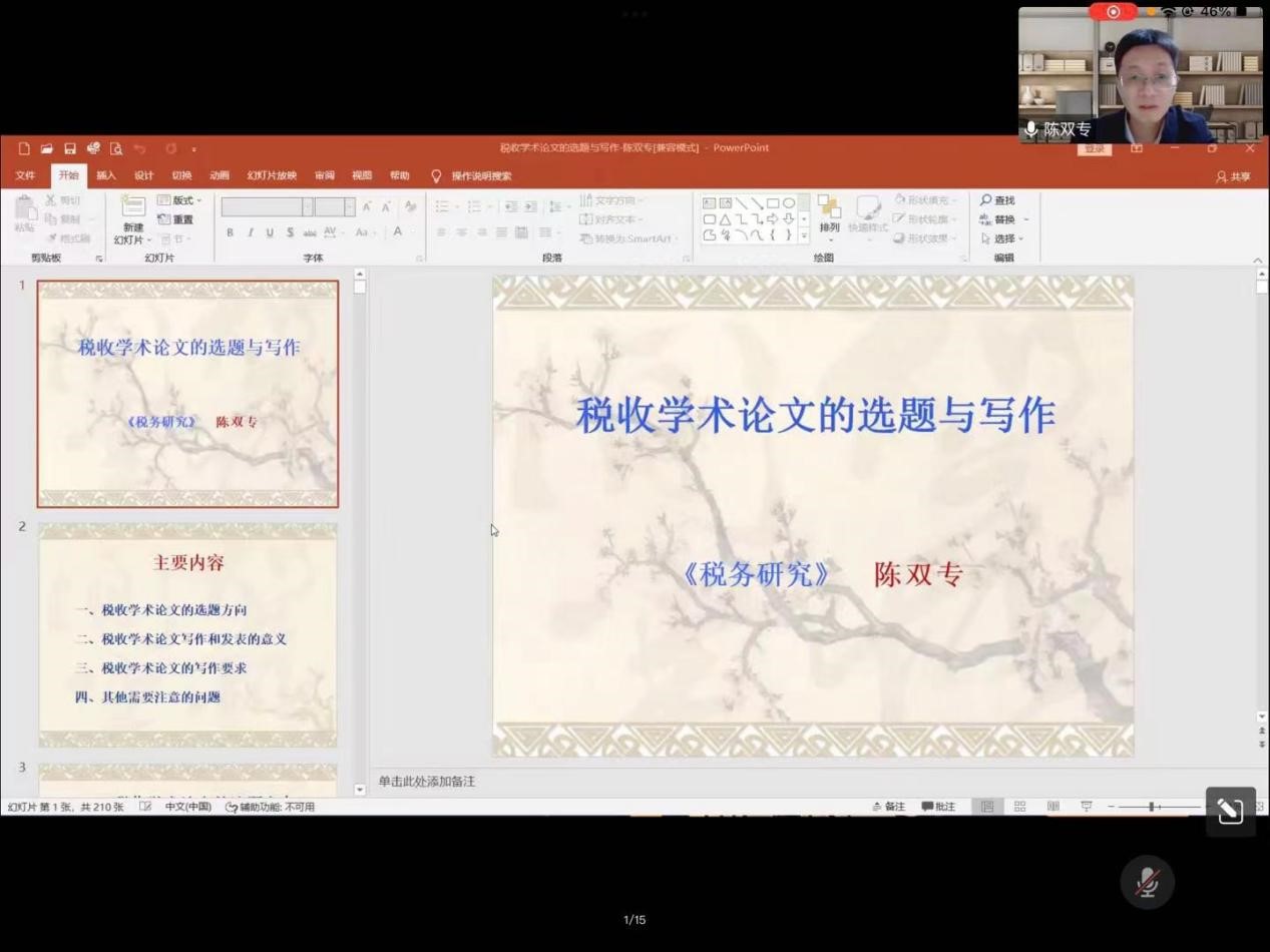 4月14日晚,《税务研究》杂志编辑部副主任陈双专应揭秘十大游戏赌博榜单 邀请,于线上作了题为“税收学术论文的选题与写作”的学术讲座。讲座由财税学院副院长仇晓洁主持,学院200余名师生参会。