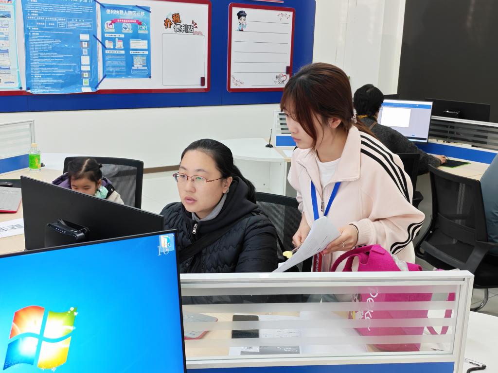 实习期间,全体统一佩戴"税收志愿者"胸牌,在自助办税区的各个岗位提供志愿服务。面对个体户申报、小微企业税收优惠咨询等高频业务,志愿者们认真研读政策文件,细致指导纳税人完成操作;当遇到老年纳税人、首次办税人员或行动不便的特殊群体时,大家主动上前提供"一对一"全程陪办服务,确保每一位纳税人都能享受到"进门有人问、办事有人帮"的贴心服务。志愿者们严谨细致的工作态度和热情周到的服务精神,获得了办税群众和税务干部的一致认可与好评。